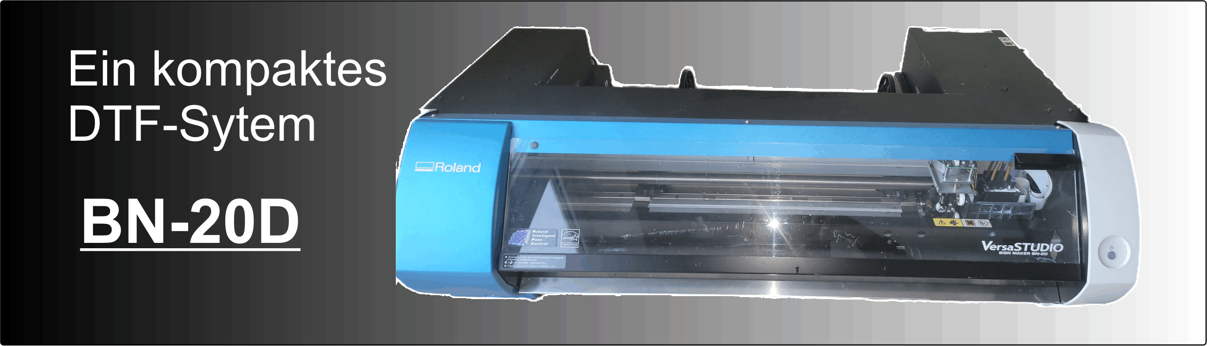 Mit der VersaSTUDIO BN-20D erhalten Sie alle Funktionen und die Verlässlichkeit des meistverkauften BN-20 von Roland DG sowie die Vorteile einer integrierten Direct-to-Film--Drucklösung. Die Verschönerung der Kleidung mit detaillierten, auffälligen Grafiken, Bildern und Texten ist mit einer BN-20D ein einfacher, problemloser Prozess: