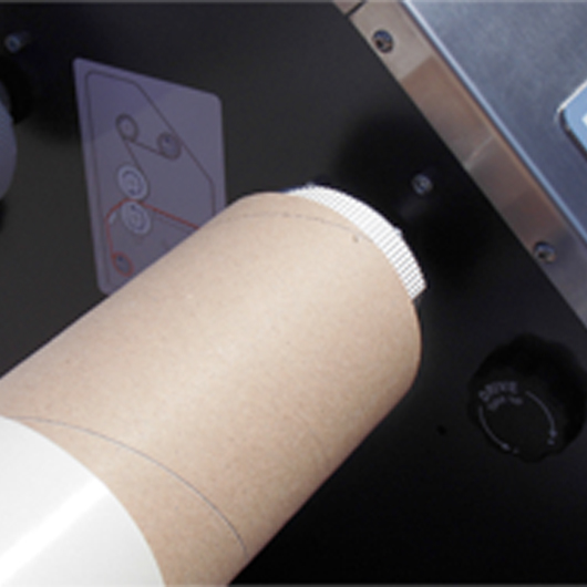 Die Autogrip-Materialaufnahme der Maschine erlaubt eine positionsgenaue Zuführung des Trägermaterials. Die verstellbare Ablageplatte erleichtert darüber hinaus das Handling von dickeren Materialien. Dazu kommt eine integrierte Bremsvorrichtung mit Feineinstellung, die ein faltenfreies Laminieren unterstützt und ein gleichmäßiges Aufwickeln des Liners bewirkt.